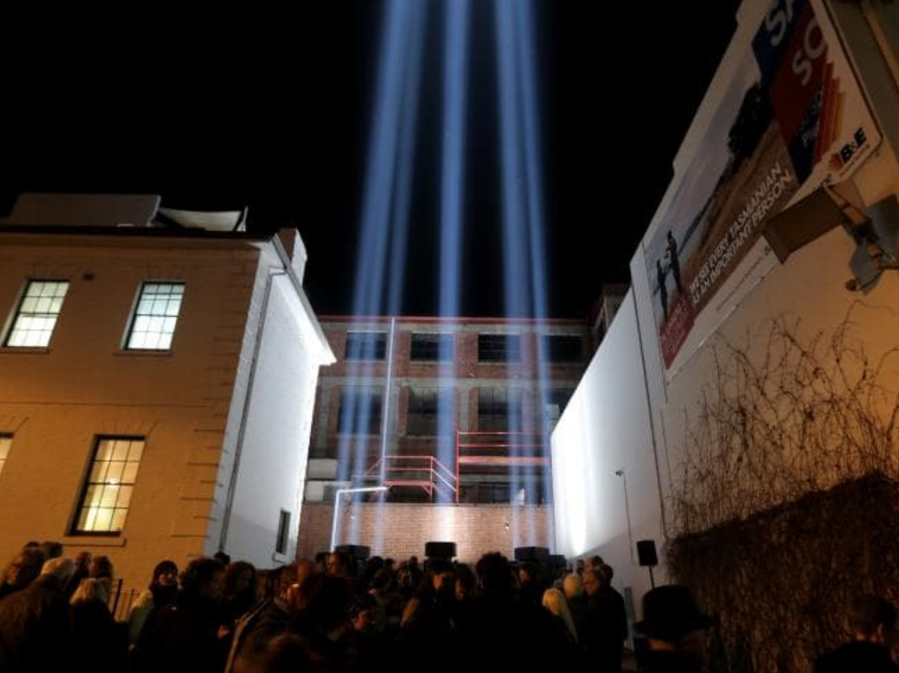 Pulse Column, by Rafael Lozano-Hemmer, was installed during Dark Mofo 2015, to highlight the site of a speculative project: Art Tower.